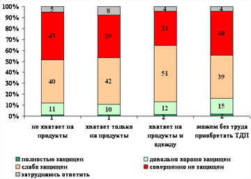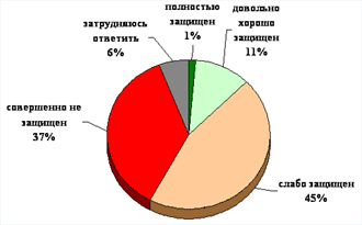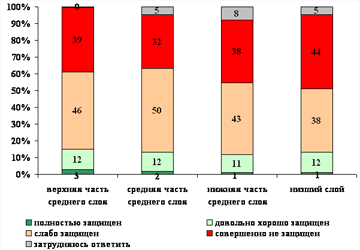 | 2. довольно хорошо защищен | 11,2 | 11,6 | 10,9 | 6 | 12,5 | 9,3 | 14,3 | 9,9 | 10,9 | 8,2 | 15,3 | 13,1 | 11,4 | 10,8 | 10,7 |