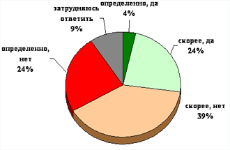 | 3, скорее, нет | 43,1 | 41,8 | 44,6 | 39,7 |