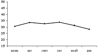 | ОБОБЩЕННОЕ ЗНАЧЕНИЯ ПОКАЗАТЕЛЯ | 25,9 | 35,5 | 33,2 | 36,0 | 30,5 | 28,2 |