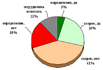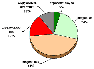 | 3, скорее, нет | 43,1 | 41,8 | 44,6 | 39,7 | 41,7 | 38,7 | 44,3 |