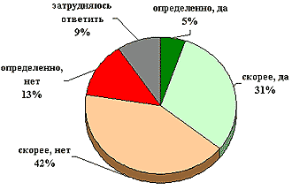 | 3, скорее, нет | 43,1 | 41,8 | 44,6 | 39,7 | 41,7 | 38,7 | 44,3 | 40,7 | 41,9 |